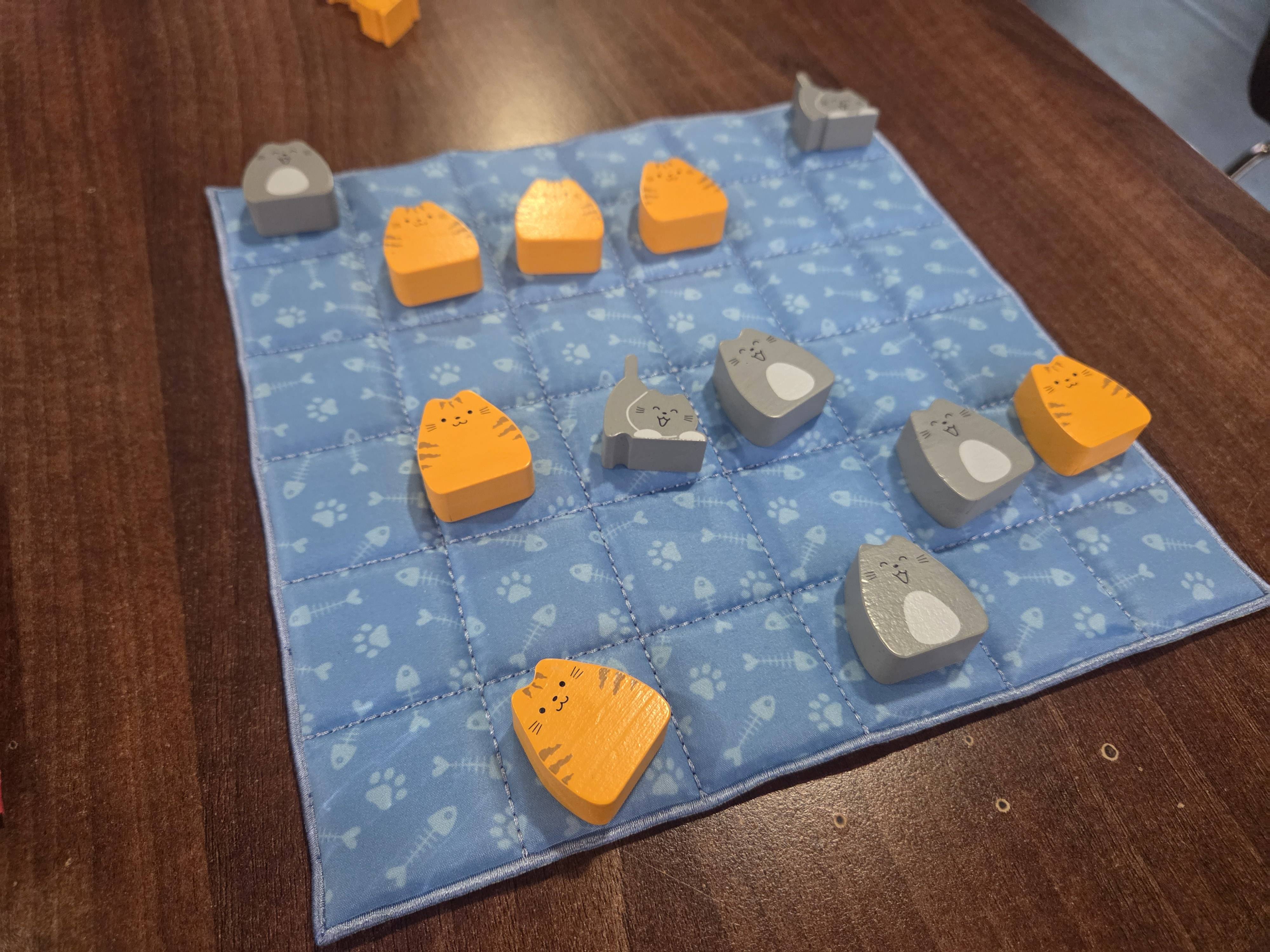 Na celé ploše ale platí jistá kočičí hierarchie. Kotě, jakožto menší a slabší, nedokáže posunout dospělou kočku. Dospělá kočka je však silnější a posune vše – jak jiné dospělé kočky, tak i koťata. Ať už budete hráč agresivní nebo defensivní, tak jistě oceníte zcela nulový vliv náhody. Žádné házení kostkou či tahání karet. Vše je zcela na vás a vašem plánování.