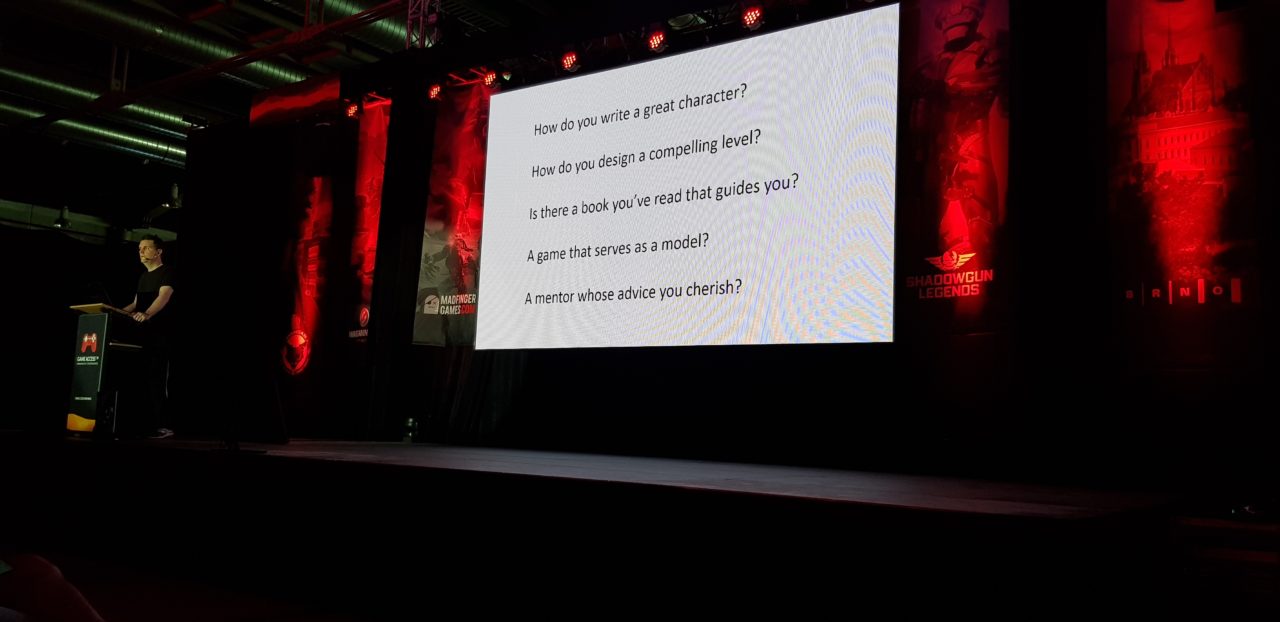 Dalším hostem na brněnské konferenci byl Ben MCcaw, hlavní scénárista Guerilla Games. Bena a studia Guerilla jistě znáte díky sérii Killzone a titulu Horizon: Zero Dawn. O těchto hrách ale nepadlo skoro nic. Přednáška byla mířena na herní vývojáře, kteří se zajímají o nové pracovní pozice nebo je láká kariérní postup. Přednáška měla velice pomalé tempo a musíme říci, že všechny rady ohledně stylu psaní životopisů, chování se u pracovních pohovorů nebo o důležitosti toho být připraven, byli naprosto základní a prosté a dozvěděli byste se je od jakéhokoliv poradce nebo byste je objevili za pár minut na internetu. Zpestřením byli postřehy a zážitky, které zažil při pohovorech se svými nynějšími kolegy. Ben nám v osobním pohovoru dokázal, že je to moc fajn chlapík a zároveň velký profesionál, který ví o čem mluví. Doufáme, že až ho uslyšíme příště, bude téma přednášky jiné.
