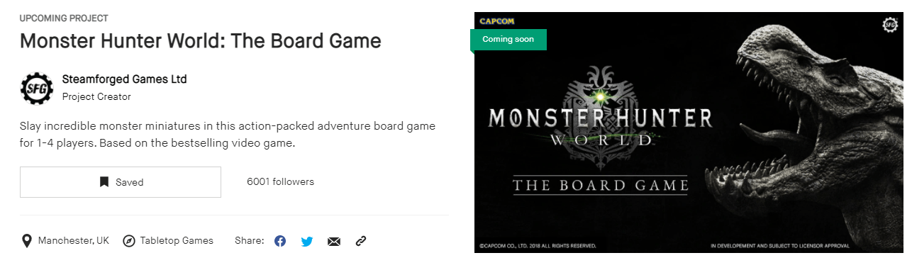 U nás poměrně neznámé vydavatelství Steamforged Games Ltd, stojící primárně za deskovkami na téma počítačových her, skáče na Kickstarter s další peckou, kterou je Monster Hunter: World. Hra z Japonského studia Capcom, která chytla za srdce nejednoho hráče v Západním světě.