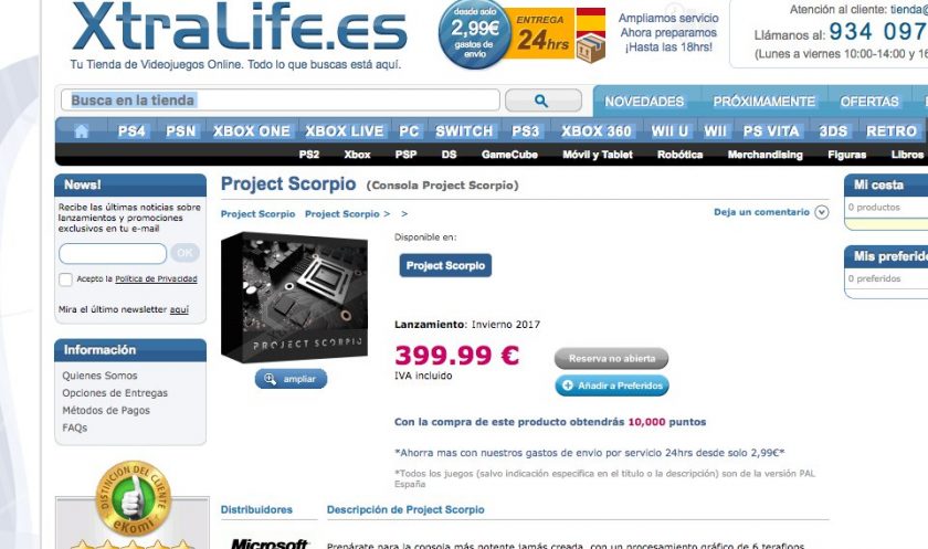 Dnes byla pravděpodobně cenu odhalil server na Twitteru uživatel DesiXBL. Španělská webová stránka zařadila do svého portfolia Project Scorpio s cenou 399 Euro. Je ovšem třeba podotknout, že se jedná o neoficiální cenu, kterou používají internetový prodejcia mnohdy tak mohou být ceny o něco vyšší. Pokud Microsoft neodhalí cenu v nejbližších dnech dá se předpokládat, že bude oficiálně odhalena až na E3.