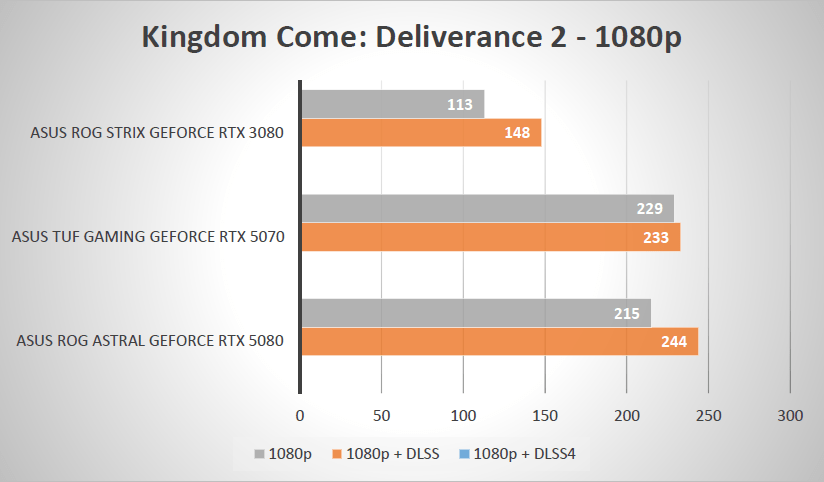 Kartu jsem v testu poměřovat s GeForce RTX 5080, na kterou si můžete recenzi přečíst zde, a poté se starší, ale za mě stále solidní GeForce RTX 3080, protože jsem bohužel neměl v době testu k dispozici kartu předchozí generace, ovšem možná o to více budete překvapeni výslednými čísly. Karty jsem testovat v rozlišeních Full HD a 4K a to jak v hrubém výkonu bez DLSS, tak i se zapnutým DLSS a pokud hra umožňovala, tak i s Frame Generation. Všechny hry byly testovány v rozlišení Ultra, a DLSS bylo nastaveno na vyvážené. Níže se můžete podívat do galerie na tabulky s výsledky.