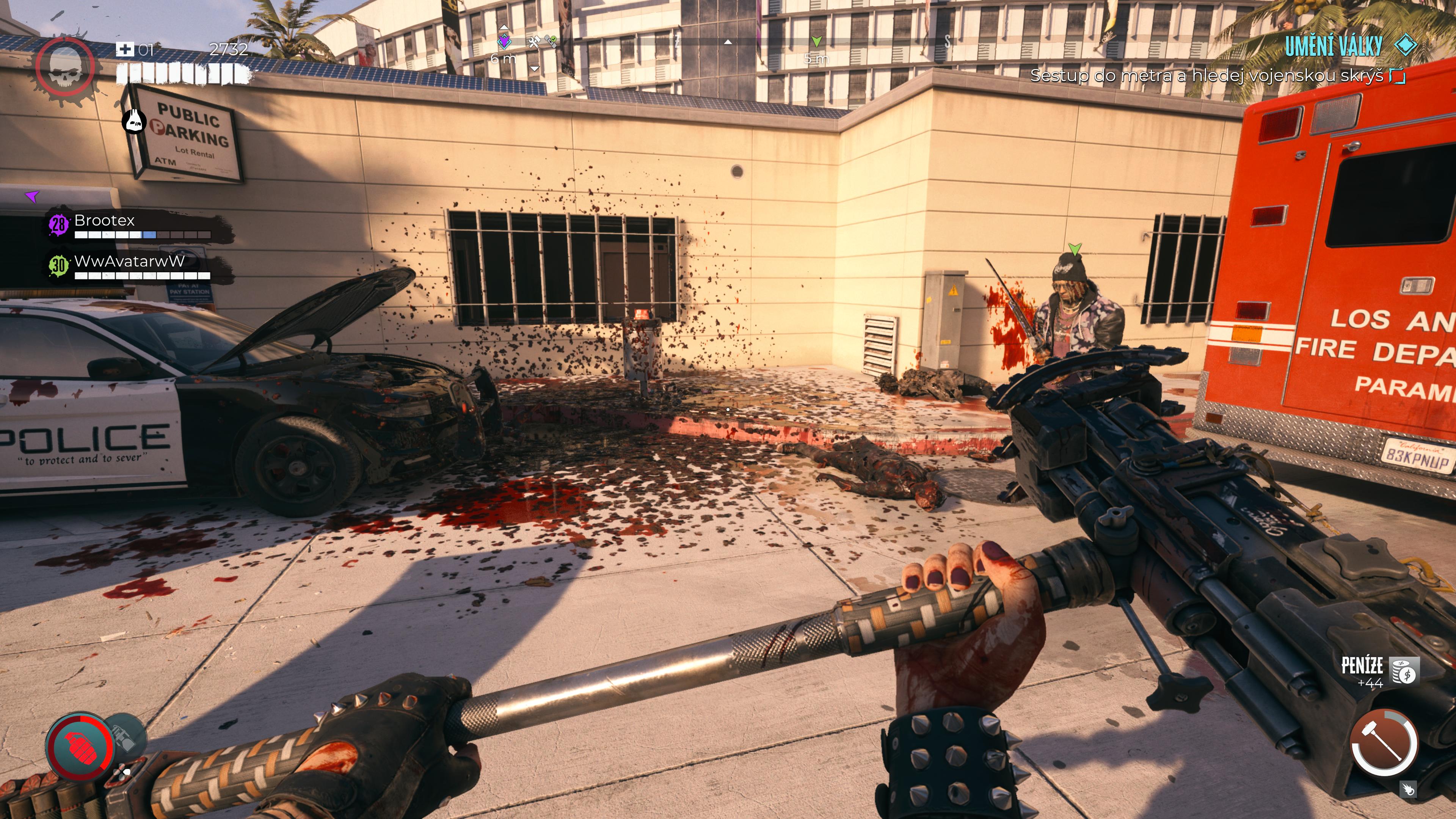 Utrpění v zombie pekle si nemusíte užívat sami. Hra podporuje co-op až pro tři hráče online. Je vám asi jasné, že dvě mačety sekají dvakrát lépe, než jedna a hraní s kamarádem je i v Dead Island 2 o několik levelů zábavnější, než hraní o samotě. V otázkách, které jste nám pokládali na sociálních sítích, se objevil i dotaz, zda nejsou 3 hráči málo. Většinu testování (30 hodin na platinovou trofej) jsme hráli ve dvou. Ve třech jsme měli možnost hrát jen krátce, ale i za tu chvilku jsme ve městě způsobili slušné rošambo. Můj názor tak je, že 4 hráči v jedné lobby by byli až příliš. I ona trojce už je celkem na hraně. V kooperaci máte kromě jiného navíc k dispozici několik bonusů. Nejenže vás může váš doprovod oživovat a krýt vám záda, ale taky si můžete navzájem vyhazovat nepotřebné zbraně. I postup hrou se ukládá všem spoluhráčům a nikdo tak nepřijde zkrátka. Ergo, další věc, která v některých jiných zcela nesmyslně chybí.