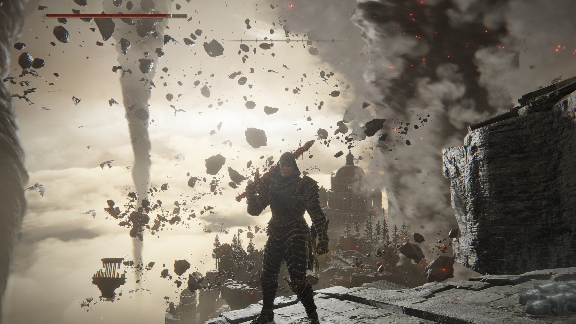 V Lands Between se nachází mnoho různých regionů a každý z nich je jedinečný, masivní a plný tajemství. Pokud jste někdy hráli nějakou hru od FromSoftware, tak víte, jak jedinečný je jejich design světa, v němž se hra odehrává. Každá úroveň nabízí spoustu zkratek a záchytných bodů, které můžete odemknout, abyste příště nemuseli dlouze bloudit. Tentokrát jste ale po krátké tutoriálové sekvenci vrženi do otevřeného světa, kde jediným vaším vodítkem je naznačení směru, kterým byste se měli od prvního Sites of Grace (bonfiru) vydat. A tak můžete poměrně rychle narazit na prvního bosse, kde zemřete během 5 minut 20x za sebou, nebo můžete strávit 20 hodin v prvním regionu a zabíjet vše co se hne, abyste zvýšili svůj level, takže když se postavíte prvnímu bossovi, můžete ho sfouknout jako svíčku a cítit se jako absolutní bůh. Můj případ byl ten první usilovně jsem trpěl, než jsem se vydal na druhou stranu, abych vylepšil schopnosti své postavy. Ale i zde mě provázel strach a obavy z toho, nač narazím a kdo mě za prvním rohem probodne, nebo sežere. Naštěstí velkým pomocníkem v průzkumu je váš věrný oř Torrent, který disponuje dvojitým skokem, velkou rychlostí a možností útočit z jeho sedla.