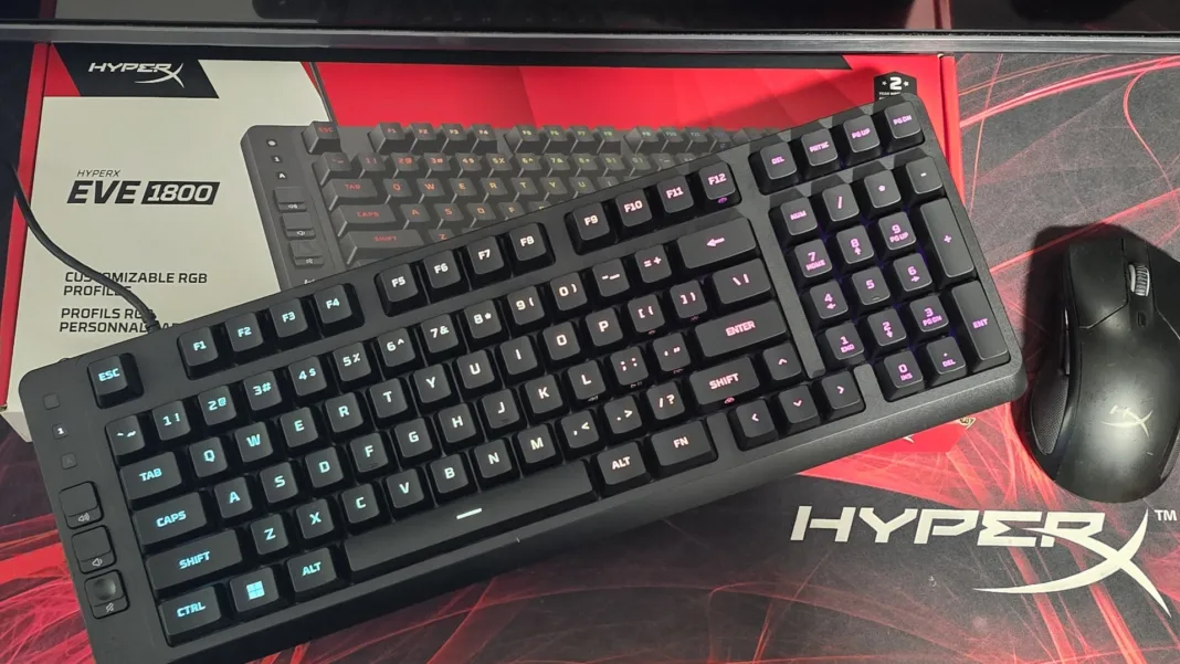HyperX Eve 1800 je kompaktní, cenově dostupná herní klávesnice s membránovými spínači, 10‑zónovým RGB a plnohodnotným 1800 layoutem — ideální pokud chcete ušetřit místo na stole bez obětování numerické části. Pojďte se blíže podívat v recenzi na to, jak si tato klávesnice vede.