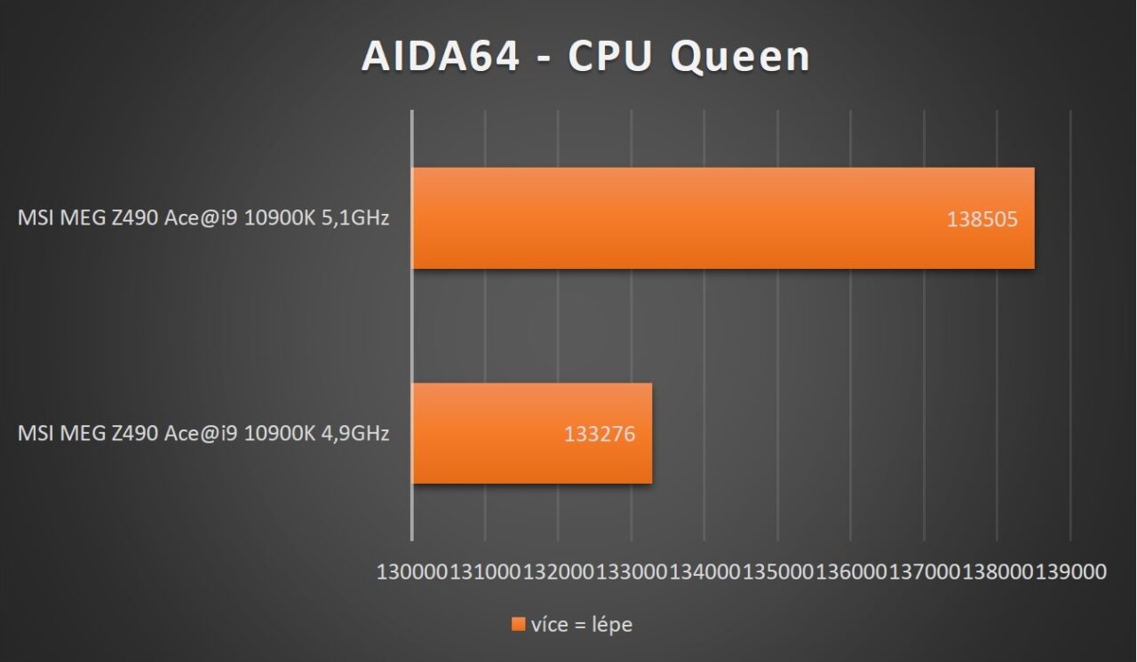 Test jsem prováděl na základní nastavení desky pouze s aktivovaným XMP profilem kdy byl takt CPU na 3,5GHZ, ale deska procesor v testu sama taktovala na 4,9GHz a poté v režimu Game Boost rovněž s aktivovaným XMP profilem a taktem na 5,1GHz. Jak si můžete prohlédnout v grafech níže Základní deska MSI MEG Z490 Ace disponuje opravdu velmi solidním výkonem. Zejména mě potom překvapil rozdíl ve výsledcích propustností pamětí, kde je nárůst oproti deskám Z390 velmi zajímavý.