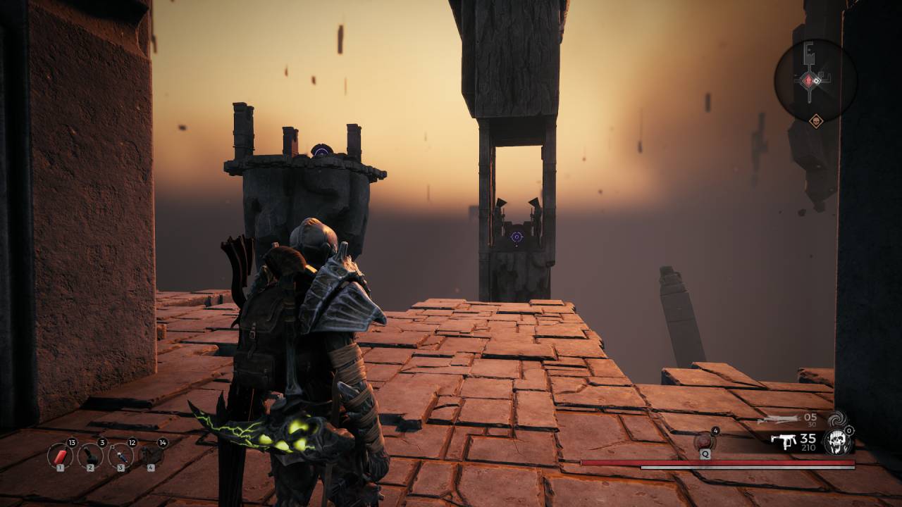 Hned od první chvíle vás hra nebude šetřit a v případě, že se rozhodnete hrát sami, budete úvodní lokace procházet několikrát dokola, abyste nasbírali dostatek materiálů pro prvotní vylepšení. Velmi užitečný pro vás bude ukazatel, který vám jasně sdělí, jak si stojí váš offense a defense v dané lokaci. Pokud vaše schopnosti nebudou dostatečné a úplně netoužíte po sebemrskačství, tak je zde možnost kooperace, kde se můžete spolehnout na pomoc svého kamaráda či jiného online hráče. Remnant: From The Ashes totiž můžete hrát až ve třech hráčích. A věřte, že v kooperaci si hru mnohem více užijete. Osobně bych vám doporučil hrát ji spíše než ve třech jen ve dvou a to zejména v případě Boss fightů, kde musí být všichni velmi precizní a je obtížné zvednout jednoho padlého. Hra totiž vyhodnotí schopnosti jednotlivých hráčů a obtížnost hry k tomu okamžitě přizpůsobí, takže i slabší hráč nebude ve světě silnějšího zcela k ničemu a naopak. Další velkou výhodou je, že ve chvíli, kdy některý ze spoluhráčů zabije nějakého nepřítele nebo sebere jakýkoliv předmět, započítá se všem v herní relaci, takže se nemusíte obávat o to, že byste někde něco minuli či propásli.
