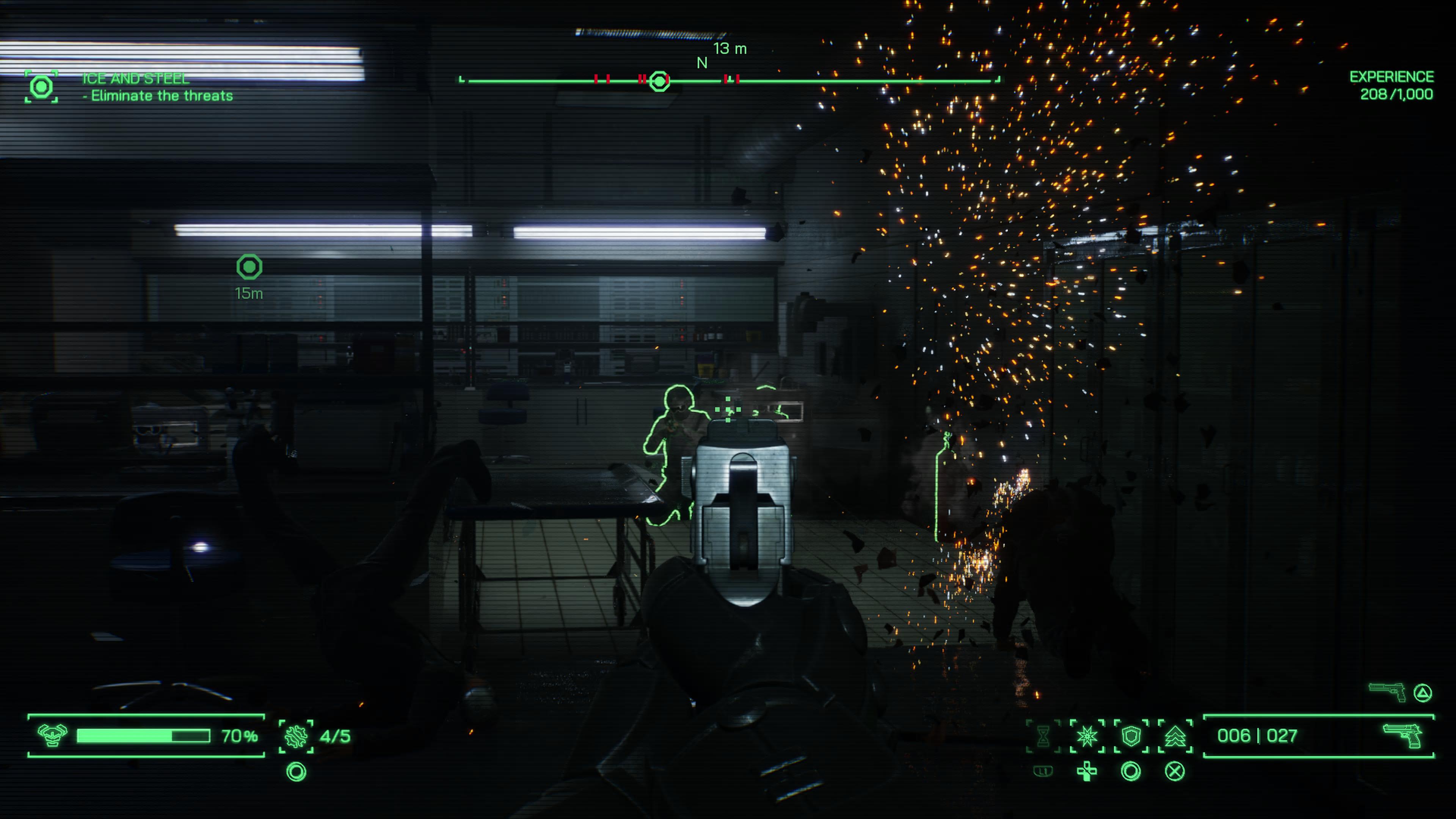 Poslední větší novinkou, se kterou samostatné rozšíření přichází, jsou nové typy nepřátel a to z masa i kovu. I do řádně obrněného elitního žoldáka je z kvérů menšího kalibru třeba nasypat dost olova než se poroučí k zemi. Tentokrát lze nepřátele navíc narvat například do odpadní šachty, nebo jimi zkratovat rozvodnou elektrickou skříň. Je to efektní, ale možností je jen pár a využíval jsem je spíše ojediněle.