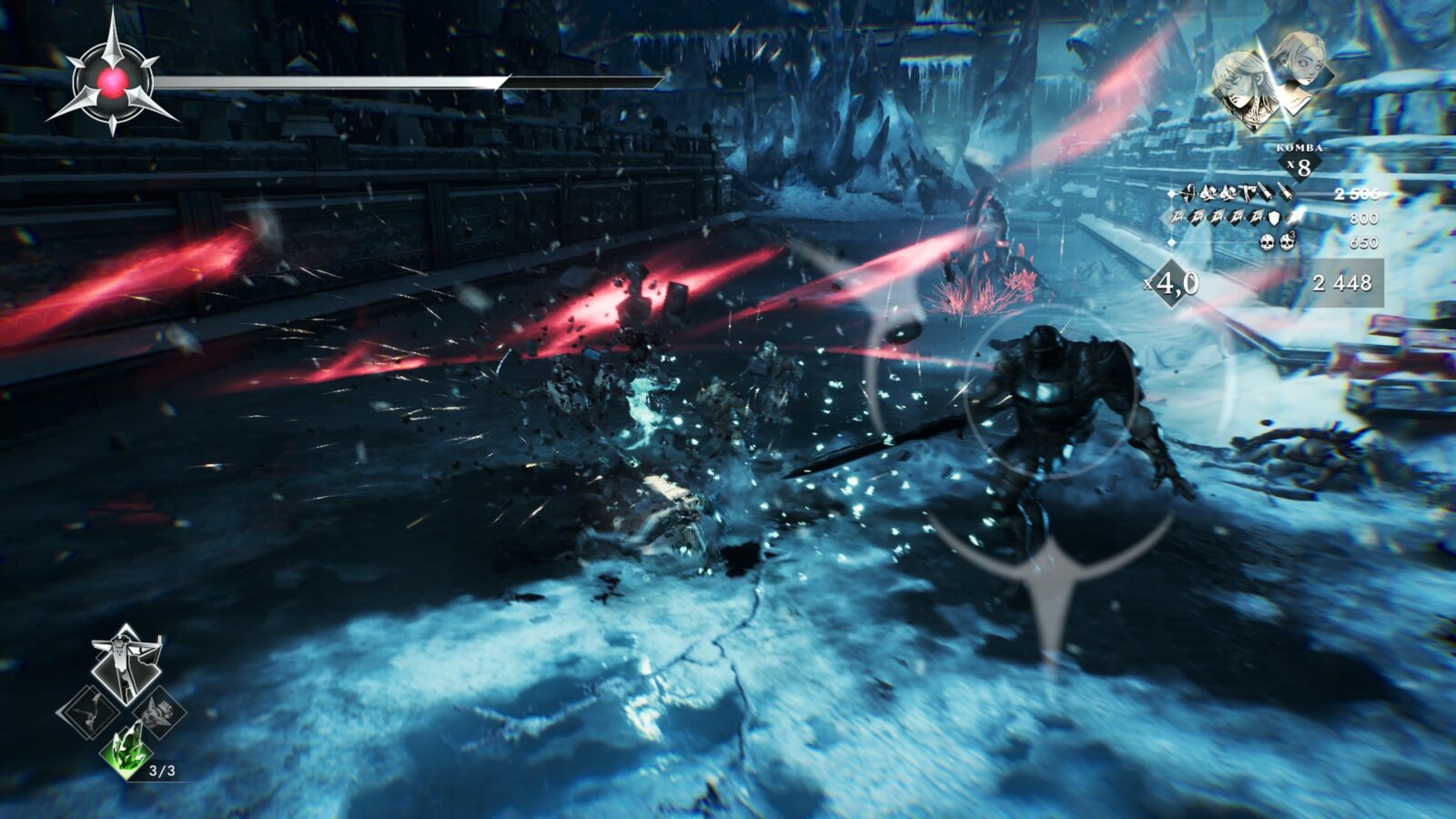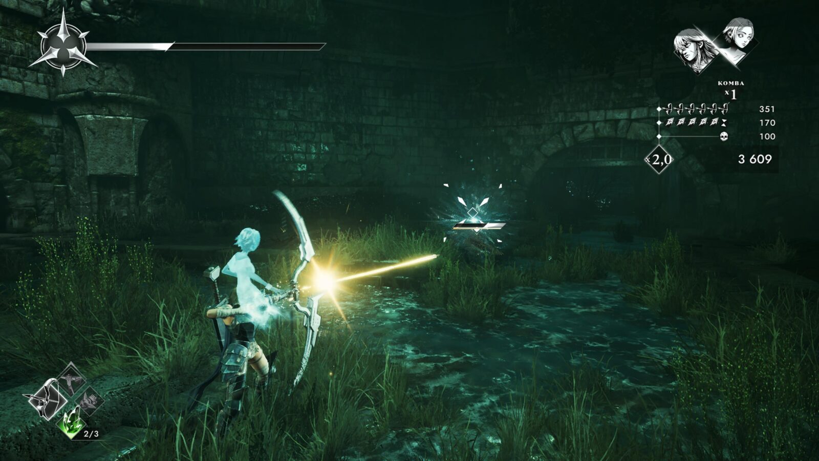 Pomineme-li problematickou kameru, funguje velmi zdatně i soubojový systém. Ten je vyjma aur založený také na stále se rozšiřujícím arzenálu zbraní, přičemž každá má kromě jasných výhod i svoje úskalí. Ostnatý bič si hravě poradí se zástupy základních nepřátel, ale ty odolnější pouze lechtá, luk hravě sestřelí létající nepřátele k zemi, ale proti skupinám nepřátel vám příliš nepomůže. Zbraní se vám postupně zpřístupní sedm a jsou dostatečně pestré, aby po většinu času zaháněly postupně se dostavující stereotyp. Jejich střídání v rámci jednotlivých soubojů je navíc nezbytné pro dosažení slušnějšího skóre v hodnocení.